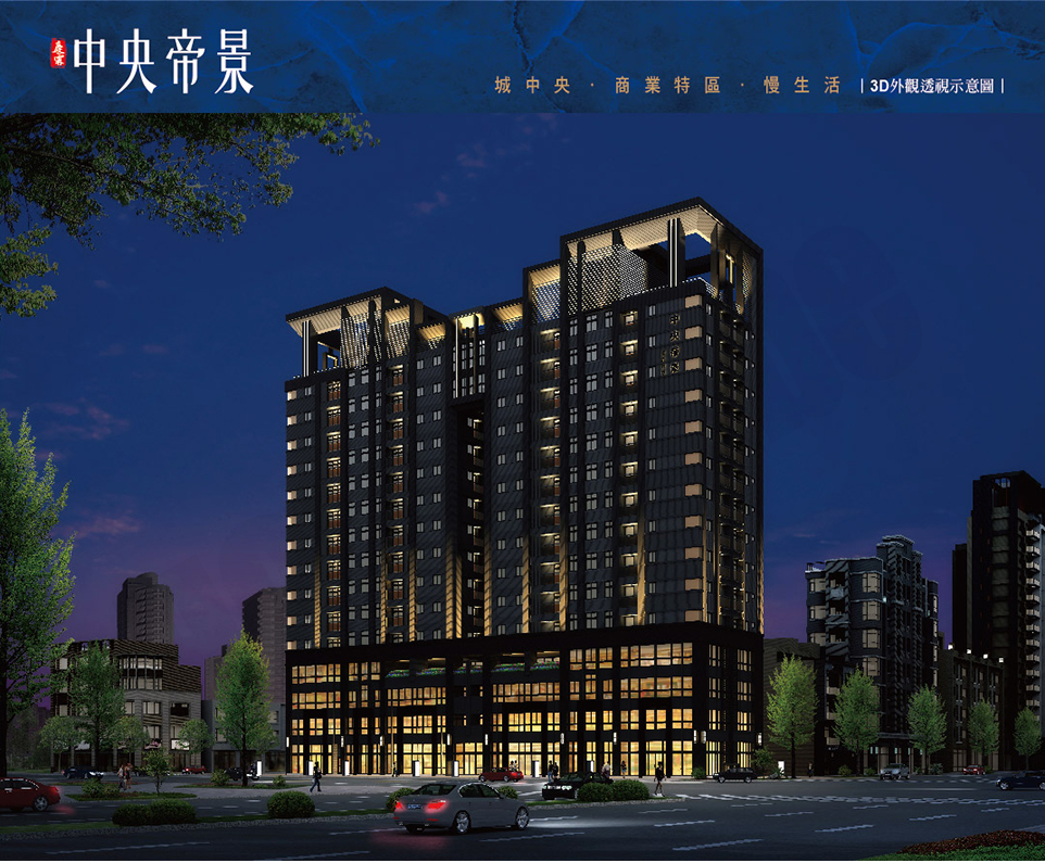 “中央帝景”是竹南頭份預售屋中第一個結合商辦與住宅為一體的大樓建築,1樓規劃成店面,2~4樓規劃成商辦用途,3~15樓則以住家3~4房為主。整棟大樓的公設安置在4樓區域,以空中庭園為主,加上閱覽室和健身房等設施。住家規劃成3~4房格局,正常坪數大約在36~39坪左右,由於屬於低公設建築,所以可以使用的室內坪數可達致27~31坪左右,並鋪設60×60cm拋光石英磚,廚具使用櫻花牌廚具,衛浴使用凱薩並搭配一台暖風機。