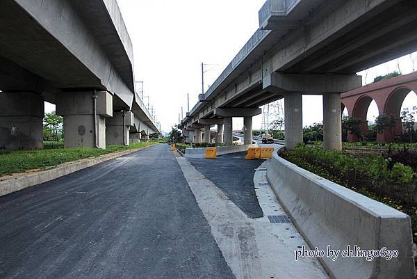 從比例來看,橋面其實挺寬的,規劃成四線道應該都沒問題,但仔細看橋邊圍起了機慢車道,沒意外的話回竹北這一端應該也會劃出來,這樣應該就無法容納汽車四線道了。