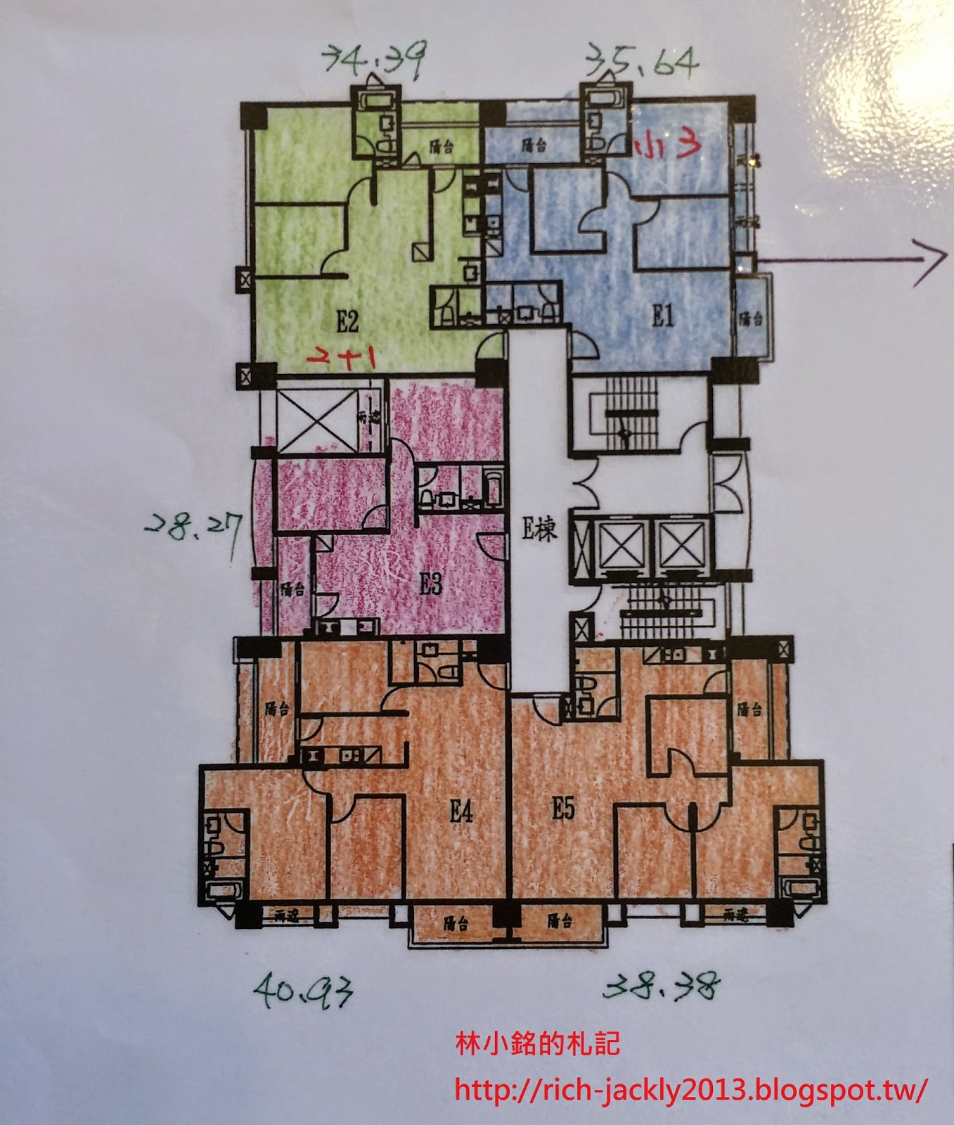 D3、E4、E5、F2、F4、F5,皆為3房2廳2衛格局,約40坪左右