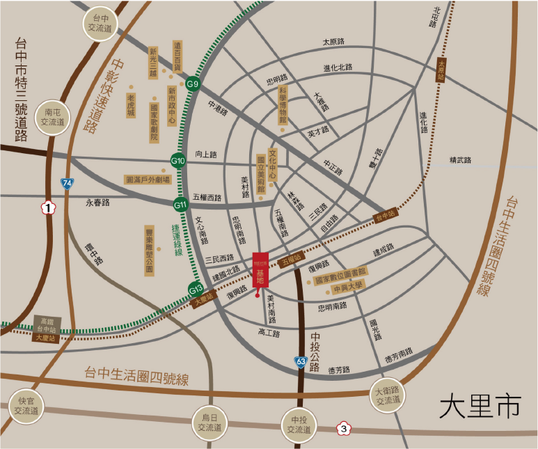 3直:忠明路,美村路,文心路