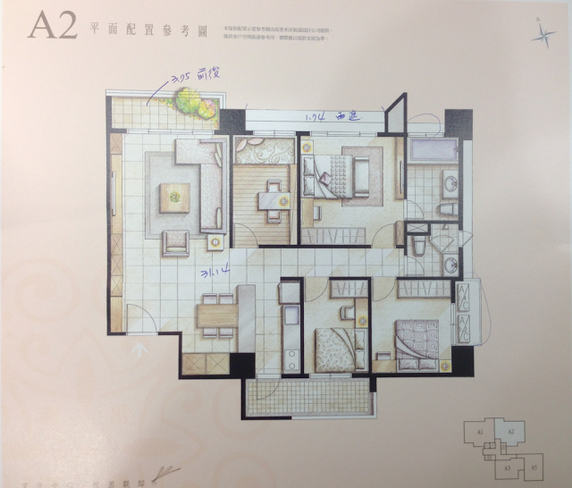 A2 四房每坪開價25萬左右,房價1,4XX萬,虛坪為55坪,另外加一個B2平面車位150萬,房價加車位總價約1,5XX萬,以上為開價,尚未進行任何議價作業。