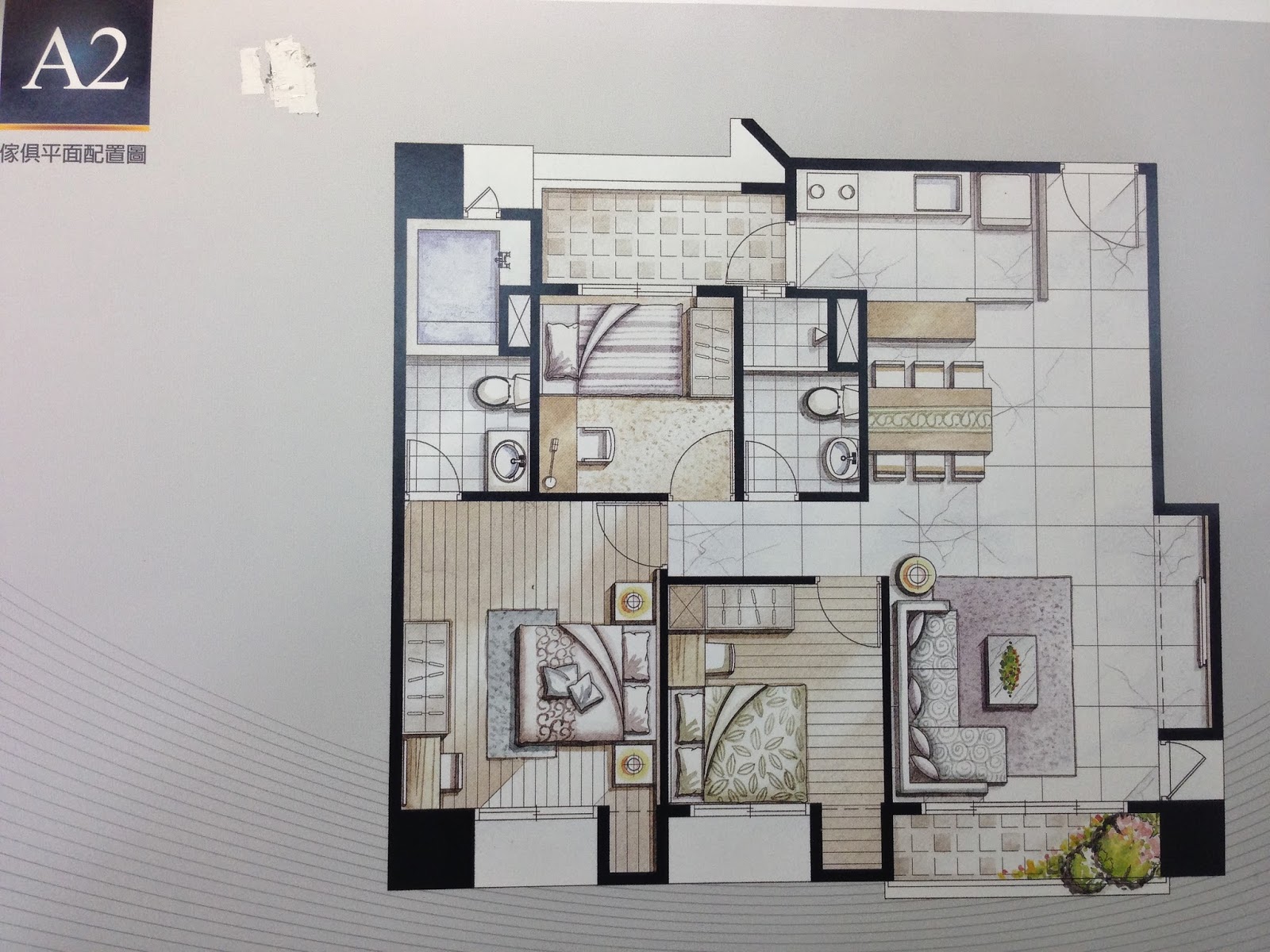 5.看過兩~四房格局,個人比較推薦三房格局(A2),格局方正,採光很好,風水瑕疵較少;四房次臥風水瑕疵及面隔壁舊大樓,視野不佳;兩房由前陽台進出,面天井,房間採光皆不錯,可看到夢時代。