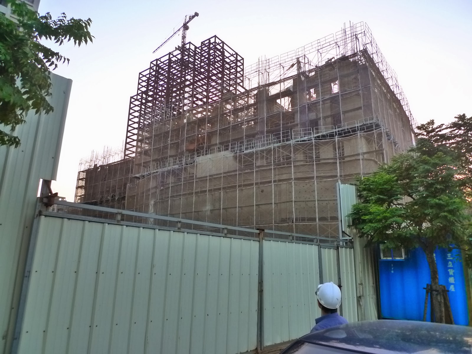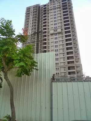 基地北向的左側則是 29樓高的豐邑湛高峰建案, 目前進行到約 6-7 樓高的進度.