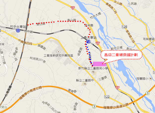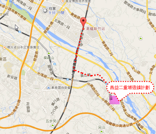 以目前該基地位址前往高鐵新竹站, 要走光明路接新中正橋, 然後走 120 縣道往竹北方向